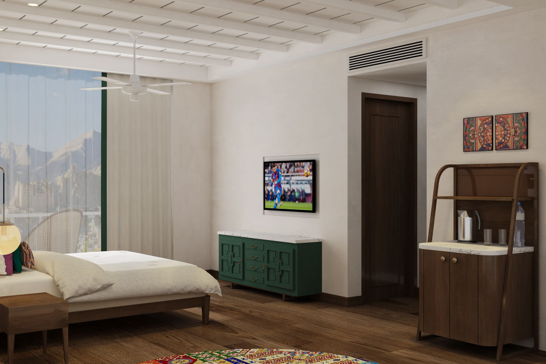 Every room features expansive eight-foot private balconies, framing panoramic mountain and valley views. Natural light fills the interiors, creating a sense of calm that is both elevated and effortless. Select south-facing interconnecting rooms offer an ideal setting for families and group travellers, balancing togetherness with refined space.